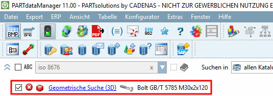 The command is only available at project level. The relevant component is transferred to the Cloud Navigator as a root node and the Geometric search (3D) search method is executed immediately.