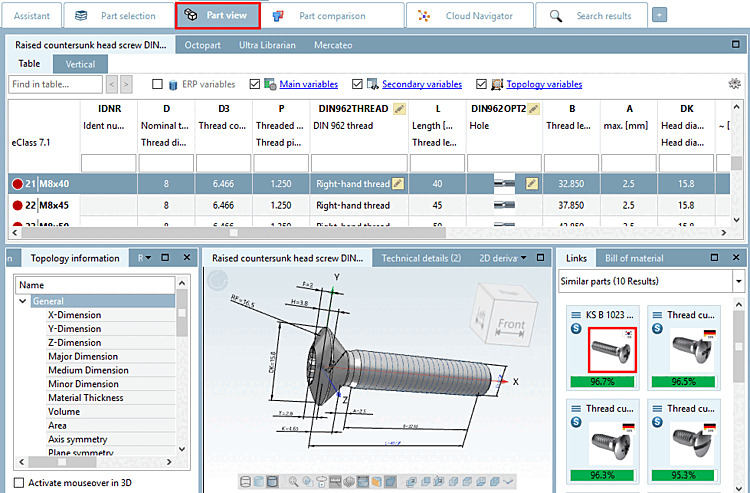 Especially in own part catalogs, where heterogeneous parts with quite different look are collected in a classification project, sorting of the table by geometrical similarity is helpful.