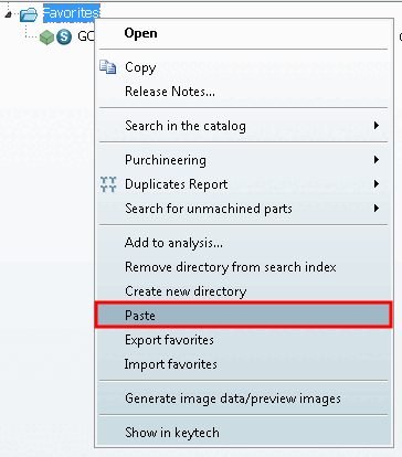 You will find the context menu command Add to favorites on the Catalogues [Catalogs], Symbols, Details, Classes, History, Analyses and Search results tab pages.