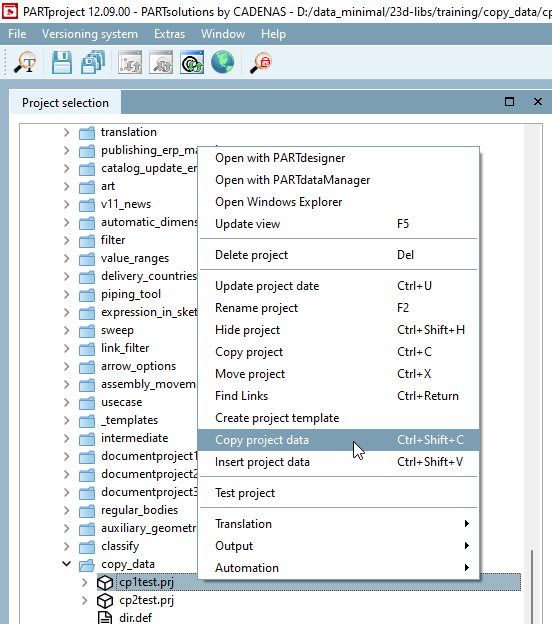 Select a project under Project selection and select the Copy project data command in the context menu or alternatively Ctrl+Shift+C.