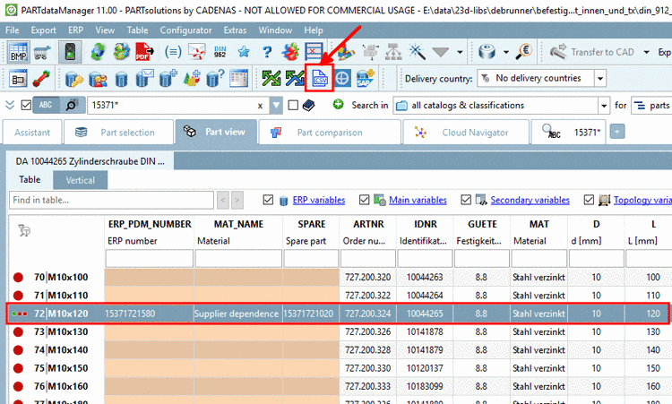 On this see Section 4.8, “ERP toolbar and menu ” and Section 4.21.1, “ Load additional scripts - erpcustom.cfg -> Block [LOAD]” and Sortierreihenfolge von Varianten in PARTdataManager Tabelle explizit bestimmen.