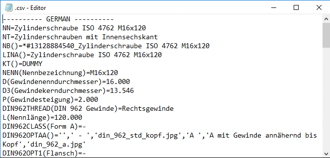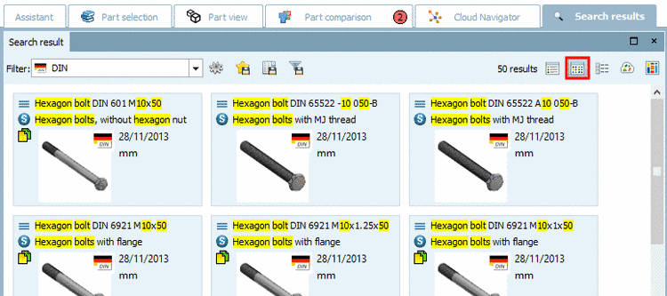 Automatic recalc on/off Display / hide options for DIN 962 standards Show/hide parts that should be avoided Functional control happens in partsol.cfg -> Block [EOLService].