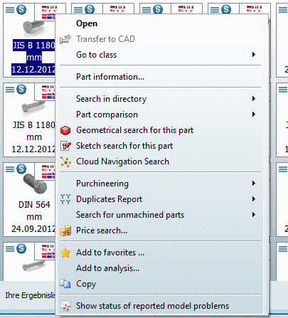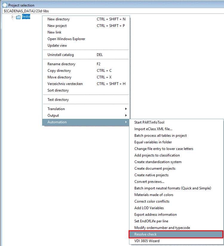 In this section you can find the PARTdataManager action names for context menu commands.