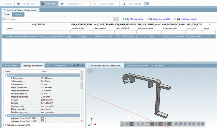 menustructure_PARTdataManager.cfg)PARTupdate PARTadmin PARTbom... Bill of material currently not used ExtrasPARTbomSelected Physical properties of the part Purchineering To control subitems see below.