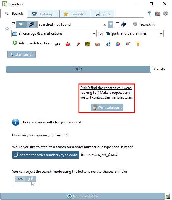 Preferred Catalog First steps PARTsolutions User Portal PDF Datasheet Catalog Feedback Bug report can also be switched on and off via configuration file. On this see Section 1.7.5.4, “ bugreport.cfg - Catalog Feedback ”.