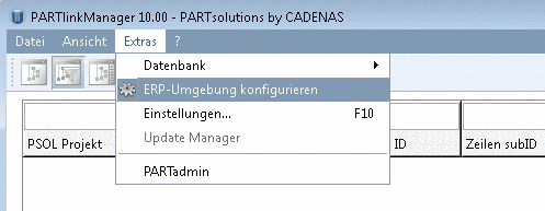 PARTlinkManager -> Extras -> Configure ERP environment -> Configure window -> Activate ERP (PARTdataManager) and/or (PARTproject)