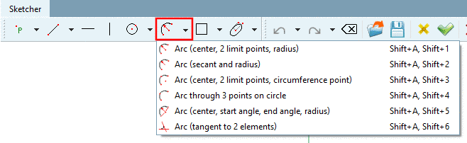 Choose point on radius: Once arc start and end are specified, the arc "hangs" on the cursor. Determine the radius with a single mouse click. Whether the point is on the arc or outside doesn't matter. Only the distance to the center point is decisive.