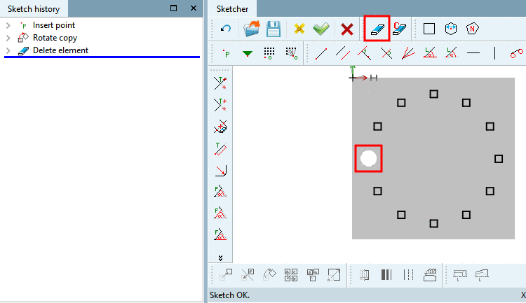 Initial situation: The origin boring is already created by Cut extrude (Sketch 2). It shall be copied in circular form so that 12 borings are created in total.