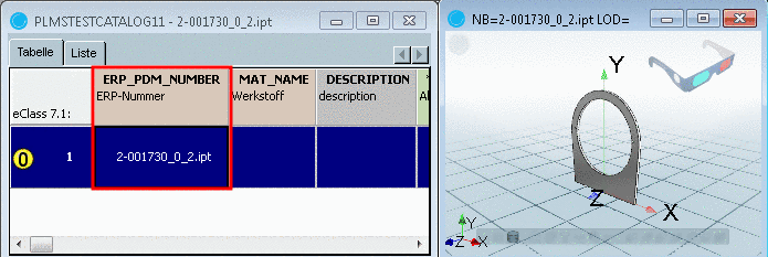 material_assign.def, the actually displayed value may be different.)-> At the selected characteristic, which is to be exported, now the desired material is displayed. (In this exemplary procedure the ERP number has been automatically generated.)