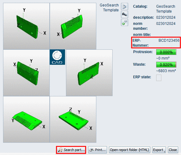 Part depiction in plastic 3D preview. The three-dimensional effect only takes place when using red-cyan glasses! The chosen part is depicted aligning in order to raise the plastic effect. The background is automatically dimmed. The option red/cyan effect can be used independently of the depiction mode (Lines, Hidden lines, Shaded, etc.). |