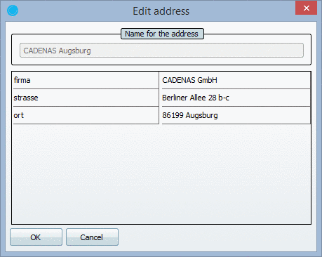 This button opens context menu Edit address. In this menu, you can change each address selected. To conclude, then confirm your entries which you make in the relevant clicked-on field with . |