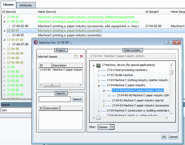If you want to edit an already existing mapping, then perform a double-click on the desired black class. -> The mapping is loaded in the dialog box.