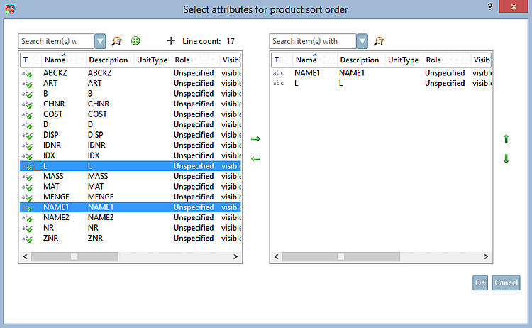 However, you have the option of explicitly defining certain attributes for the sorting. You can open the corresponding dialog using Define product sequence [Define product sort order].