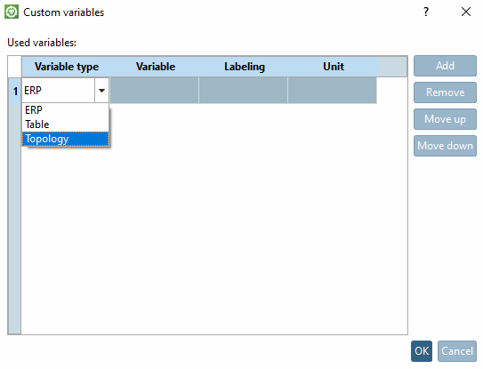 Input options for variable type Topology: First, the term "Topology" is displayed in the cell. Click on it.