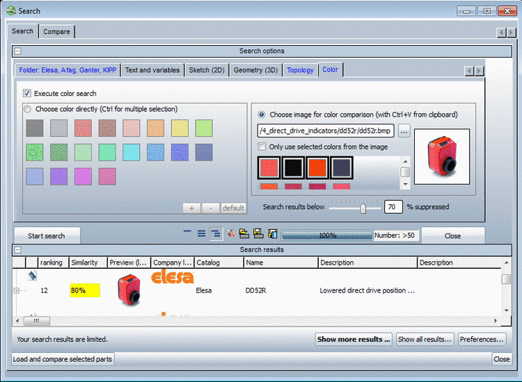 If catalogs have used colors for the part depiction, then you can use the Color Search, either as only search method or in combination with other methods, in order to enhance the quality of the search results.