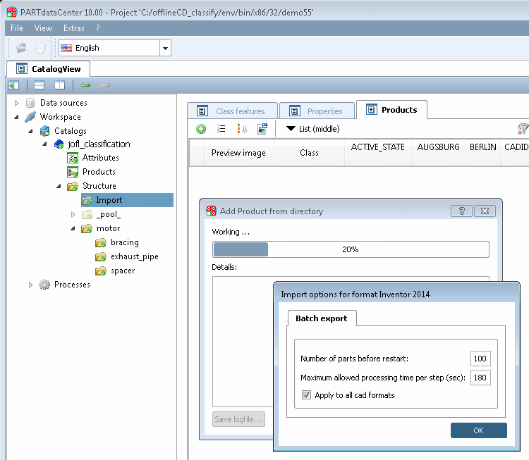 Select the import directory in the structure view [Structure] and click on the Import products from CAD command in the context menu.