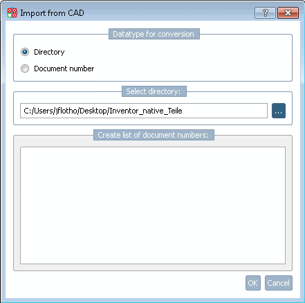 -> Directory selection [Select directory]: The path to the desired import directory is now entered.