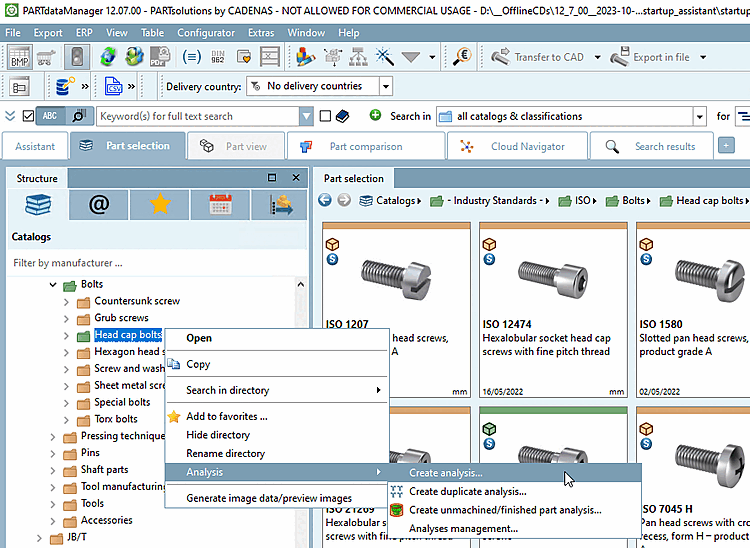 All search parts in the selected directory are listed under Part selection. By clicking on a