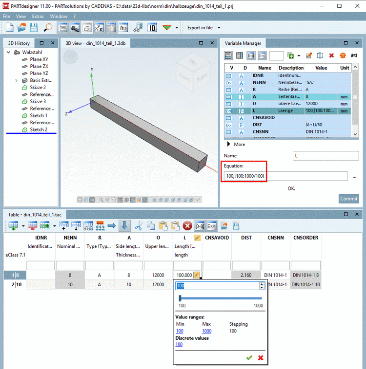 With the help of the command Resolve value ranges... (PARTdesigner -> Extras menu), characteristics containing value ranges are split in separate characteristics.