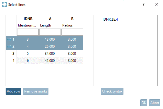 Alternatively you can determine desired rows directly in the table. Then an appropriate formula expression is automatically generated.