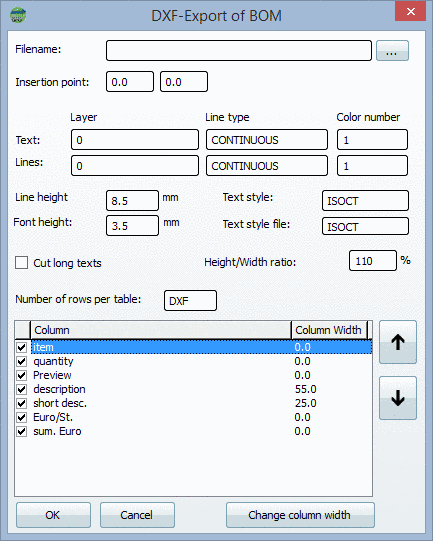 It can be imported by a CAD system at a later point. Table display criteria which are then allowed for in the CAD system, can already be defined in PARTbom using various input fields.
