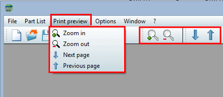 You can use the Zoom in [Enlarge] and Zoom out [Reduce] commands to change the display size of a print preview page [Print preview].