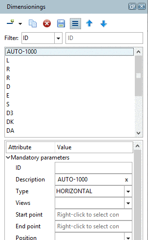Views which contain a dimensioning, can be recognized in the 3D toolbar by a respective icon with dimensioning lines