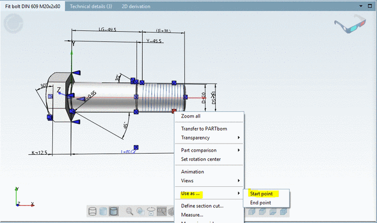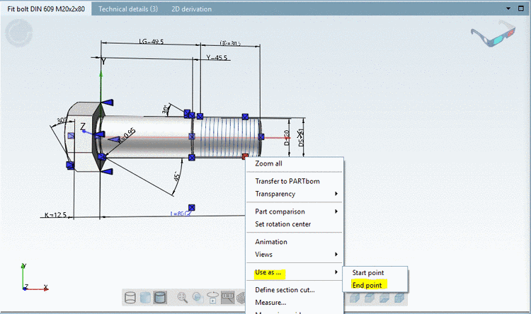 use it as separate window.-> Now the dimensioning points (blue) and connection points (green) are displayed.