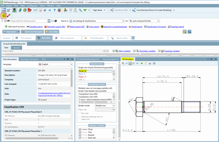 Under Mandatory parameters -> Views, select the desired 2D view(s), where the dimensioning has to be displayed. Here in the example Front+ Z.