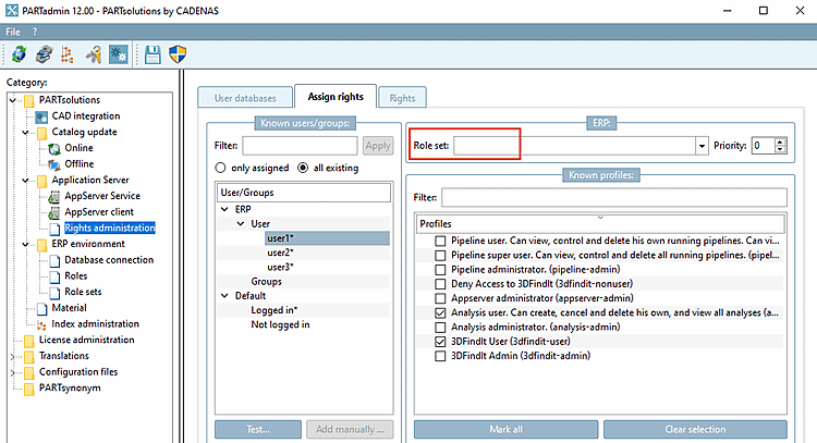 Open PARTadmin -> Rights management [Rights administration] category -> Rights assignment [Assign rights] tab page.