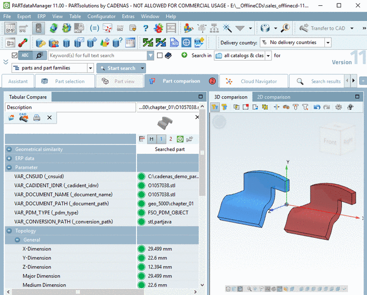 is displayed.When clicking on the button, the search part and all result parts underlying are loaded into the comparison.