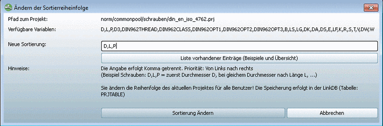 $CADENAS_SETUP/erpcustom.cfg, in the blockADDTODB_VARSactivate the key with the value$CADENAS_SETUP/scripts/erp/erp_sorttable.vbb. Should the key not exist then please add it yourself.Once the activation of the key happened the dialog box Change sorting order? appears when a variant has been set. Not before the sorting has been explicitly determined for a certain project, the dialog box won't appear anymore.