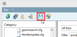 Once an adjustment has been performed for a key value, key and value are displayed in boldface. Furthermore the configuration file is displayed in boldface.