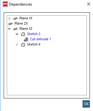 The dialog Dependencies can be called on any point of the 3D History).