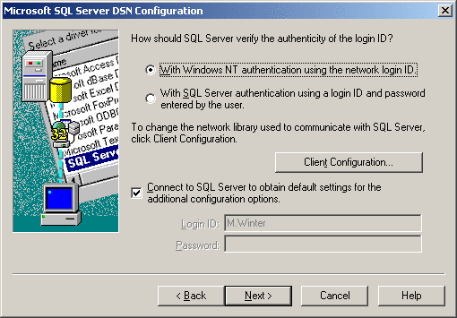 1. Open configuration window via START --> Settings --> Control Panel --> Administration --> Data sources (ODBC) --> Register System DSN --> Add / Configure --> 2nd settings window