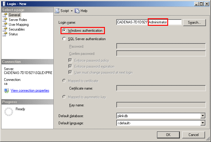 3. The appropriate username with the Windows NT authentication option must be applied in the database server.