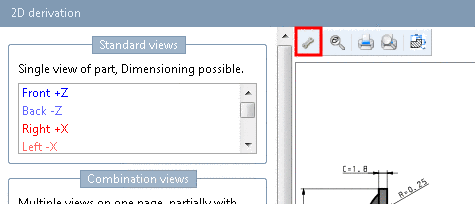 In the 2D derivation, you can edit and save Combination views in Edit mode. Hereto you have to be in Admin mode (can be recognized in PARTdataManager in the Status line down right).[103]