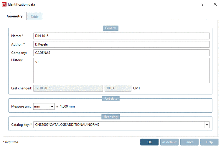 Alternatively, it can be called anytime in context menu of part name with a click on Identification data....
