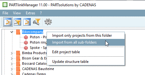 2. Import all projects of "Bikecompany" into PARTlinkManager.