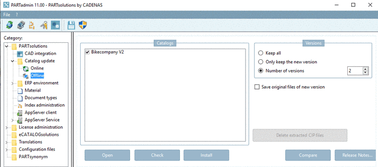 In PARTdataManager you can either load the old or the current version (the just installed).