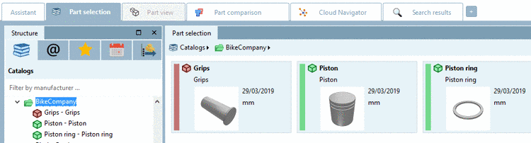 The project "Spoke" does not exist anymore (compare Fig. „PARTdataManager catalog "Bikecompany" V1“).