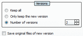 You may select for yourself how many versions you would like to keep. Should you enter "1", his will result in the same as the option Only keep the new version. Please regard that the set value is 2 or higher. Especially when updating with LinkDB connection (ERP integration) this is urgently recommended.[a] | |