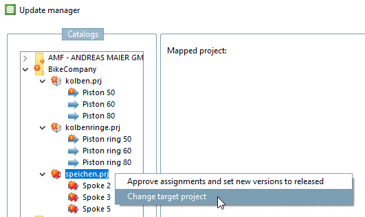 Context menu command Change target project