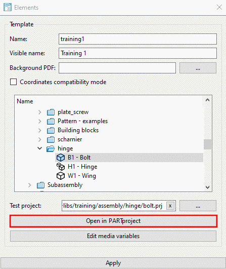 -> The dialog box Templates for PARTmedia is opened.