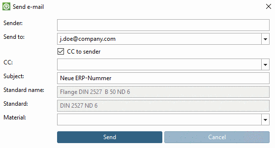 The entered Receiver and the Subject are shown when calling the dialog in PARTdataManager.