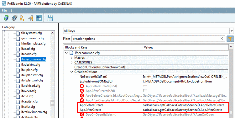 Independently of the specifically used PDM/PLM integration, the two keys "AppBeforeCreate" and "AppAfterCreate" have to be activated mandatorily.