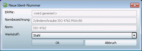 -> The dialog box new ident-no. opens.