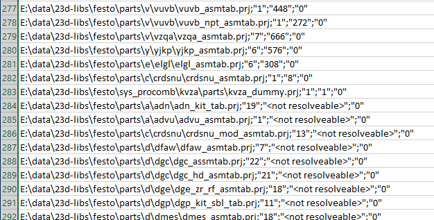 Furthermore in Excel, a list of all projects is opened, which clearly shows for which projects a ReverseConfig has to be created (recognizable from the parameter <not resolvable>).