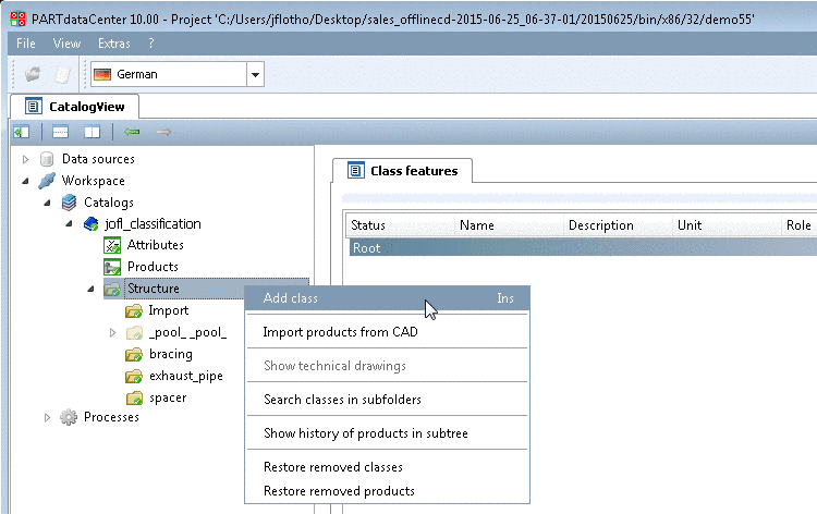 2. From the tabbed page Part view, from the table. (In this way a later adjustment of the characteristic is not necessary.)