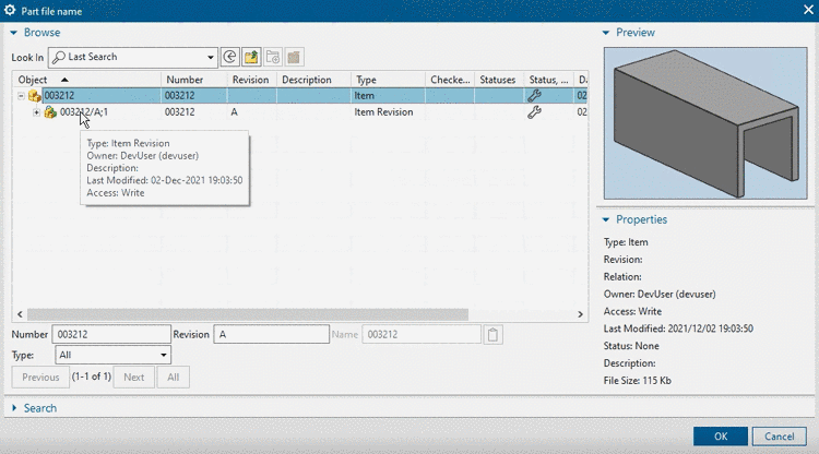 In the list field under Look In, select the option Teamcenter.